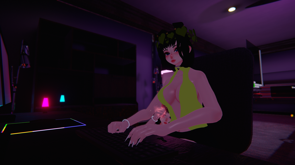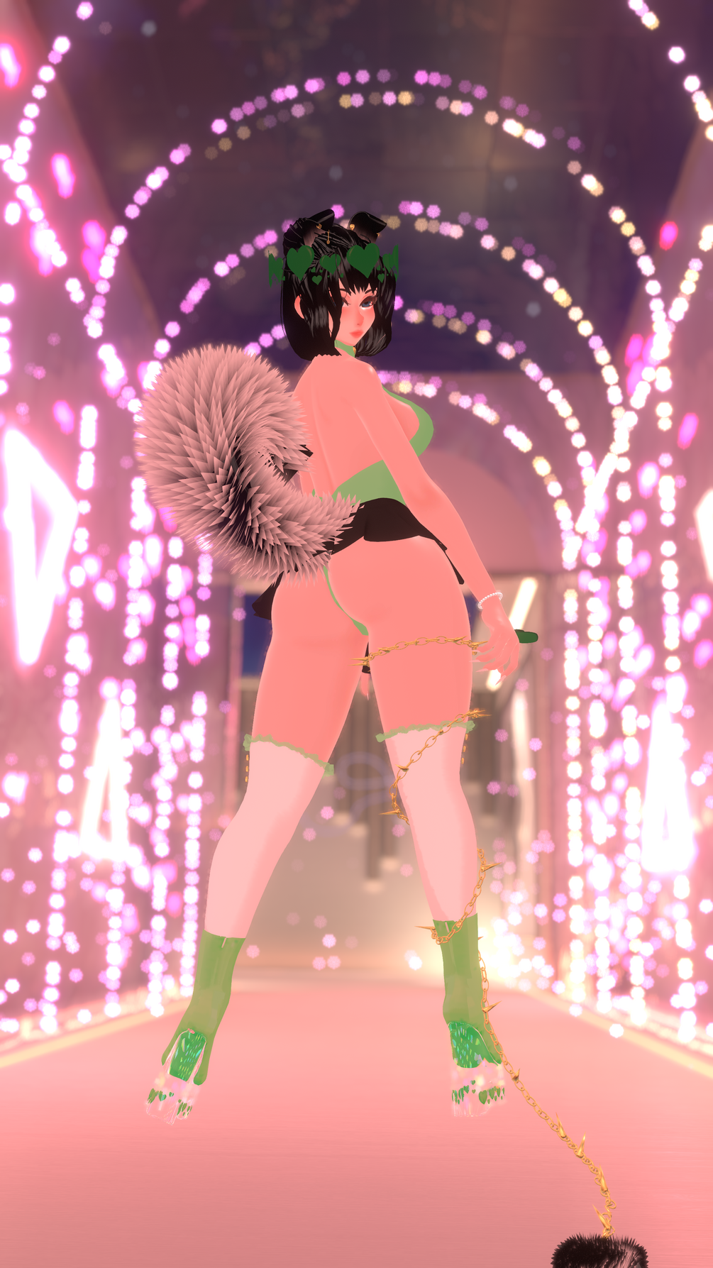Features: GoGoLoco, Contacts, Finger Trails, Hand+Feet+Breath particles, Facial Expressions, 4 Skin Tones, 7 Hair Colours, HueShift for hair, ears, tail, halo, bodysuit, skirt, shoes, socks frill, headband, metal colour swaps (gold/ silver/ rose gold), 4 bodysuit swaps, 6 skirt swaps, bodysuit, puppy ears, tail, choker, halo, hair swap, loli, skirt, heels, socks, leg chain, pearls
